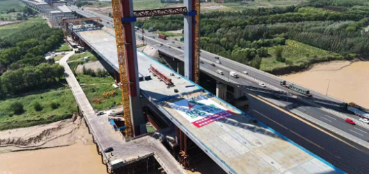 京臺(tái)高速公路齊河至濟(jì)南段改擴(kuò)建工程黃河特大橋主橋鋼箱梁順利合龍